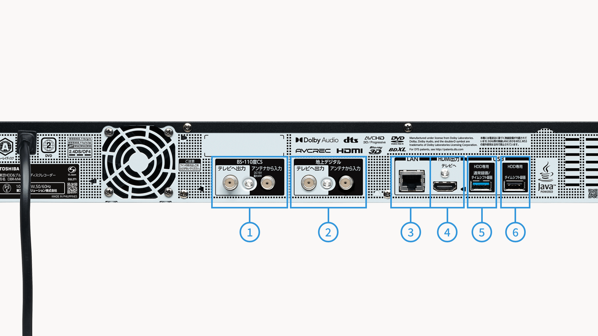 | 音声出力 | AAC、Dolby Audio™、DTS-HD®、L-PCM(7.1ch) |