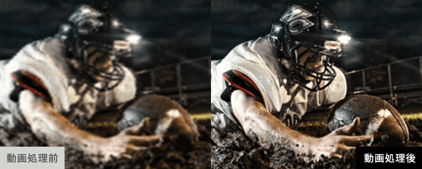 ネット動画で発生する圧縮ノイズやバンディングを抑制することで、大画面で視聴してもなめらかで自然な高画質を実現します。