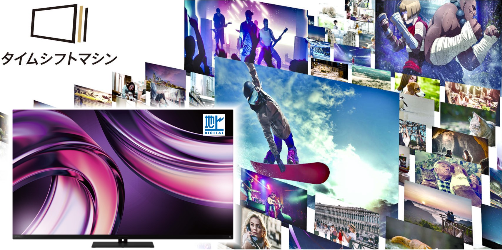 タイムシフトマシン搭載レコーダーなら、地上デジタル放送*/BSデジタル放送*/110度CSデジタル放送*の中からお好きな番組をまるごと録画。BS/110度CS対応で楽しみ方の幅がさらに広がります。 *タイムシフト録画できる地上/BS/110度CSのチャンネル数やご利用可能となる条件は、商品ごとに異なります。詳しくは商品ごとのWEBページをご確認願います。